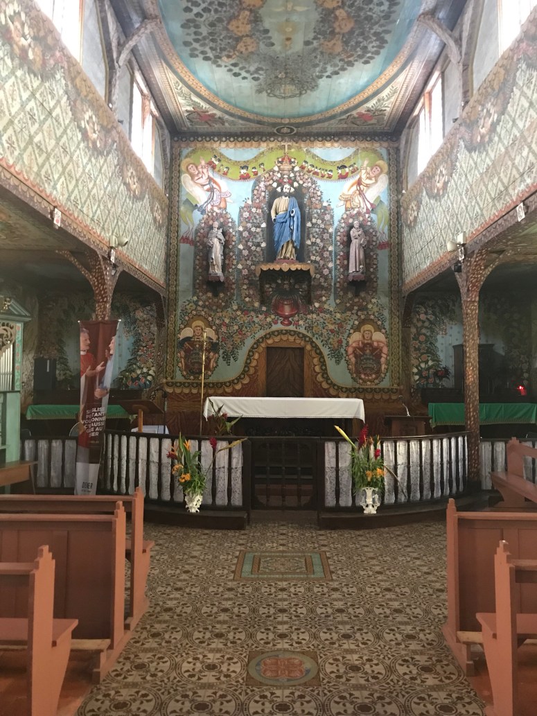 Compared to the murals in the church on Île Royale painted by Francis Lagrange which despite restoration have fallen into disrepair again, the murals in the Église Saint Joseph are in excellent condition no doubt due to the church’s ongoing function at the centre of Iracoubo life.